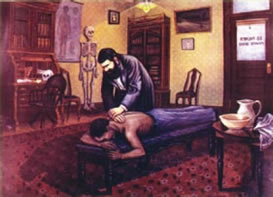 D.D.パーマーは9年間の間、人間の病気の根源を研究していました。D.D.パーマーは雑役夫をしていたハービー・リラード(Harvey Lillard)が、17年間耳が聞こえないことを知り、どうしてその様になったかを聞くと「17年前のある日、窮屈な姿勢で身をかがめた時、何かが背中を走るような感じがして、それっきり何も聞こえなくなった。」と答えました。D.D.パーマーはその時の状況に興味を持ち、リラードの脊柱を検査している時、椎骨に盛り上がり瘤が出来ているのを発見しました。